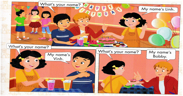 My name’s Linh. Nice to meet you. What’s your name?