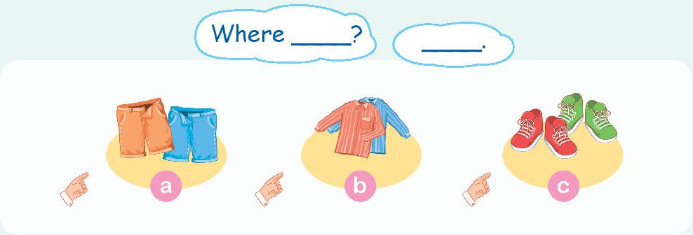 A: Where are the shoes? (Đôi giày ở đâu?)