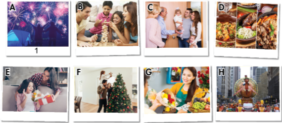 1. Kwanzaa 2. Christmas 3. Thanksgiving 4. Lunar New Year |