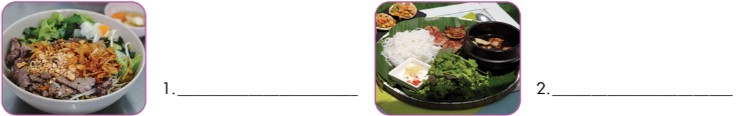 (Đọc bài và viết tên các món ăn bên cạnh tranh.)