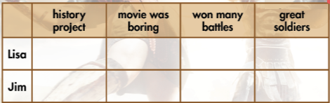 a. Listen to Jim and Lisa talking about the movie Alexander the Great. Who liked the movie?