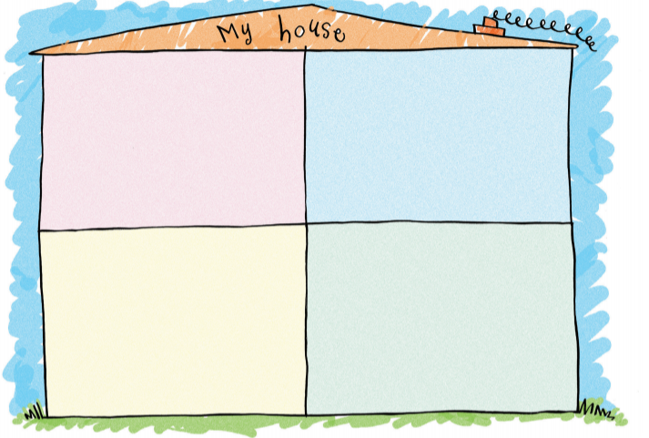 Học sinh vẽ và trang trí ngôi nhà của mình. Sau đó, thêm các người thân trong gia đình vào từng phòng trong căn nhà.