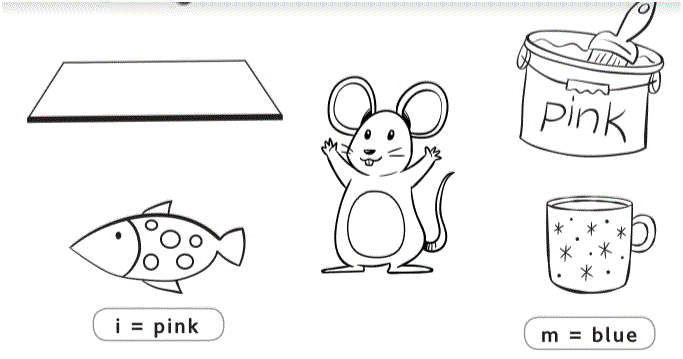 i=pink (từ có chứa i thì tô màu hồng: pink, fish)
