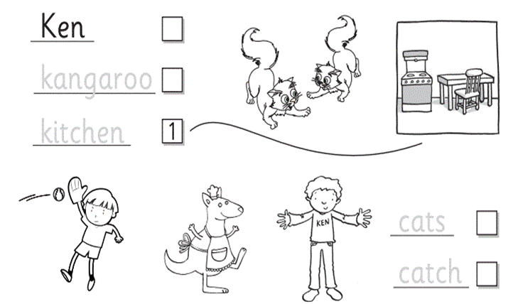 6. Listen and number. Then trace and match.