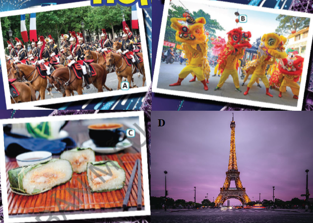 (Ngày Bastille đối với tôi rất thú vị thông qua các hoạt động và lễ kỷ niệm: diễu hành và bắn pháo hoa. Tết đối với tôi thật thú vị qua những màn múa lân và bánh chưng.)