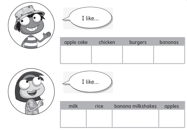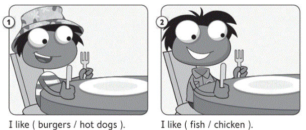 (Tôi thích ( cá / thịt gà ).)