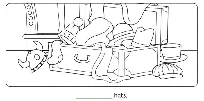 (Tìm và tô màu những cái nón từ câu chuyện. Sau đó viết ra số cái nón.)