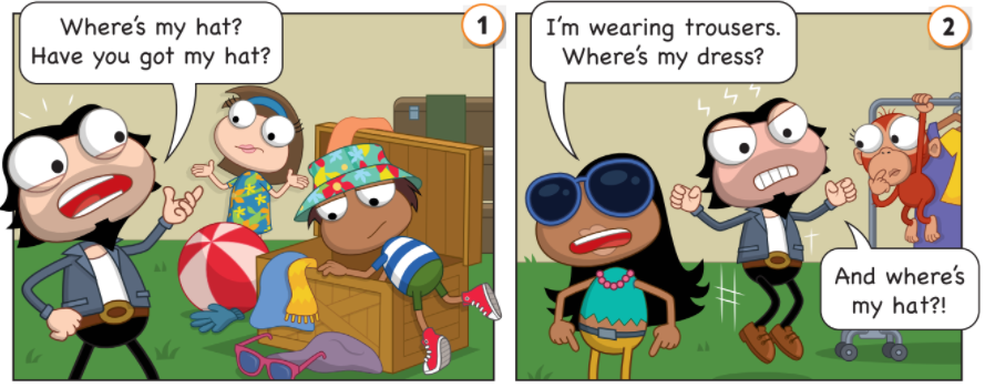 1. Người đàn ông: Mũ của tôi ở đâu? Bạn tìm thấy mũ của tôi chưa?