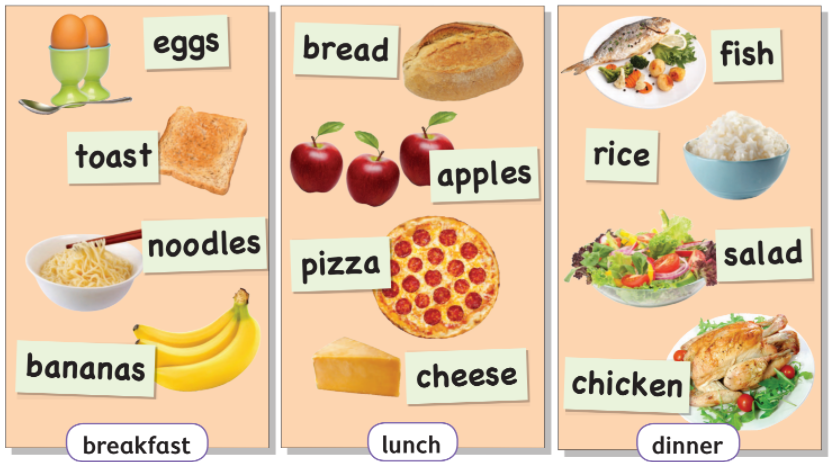 Đã đến giờ ăn trưa! Tôi thích pizza và pho mát cho bữa trưa.