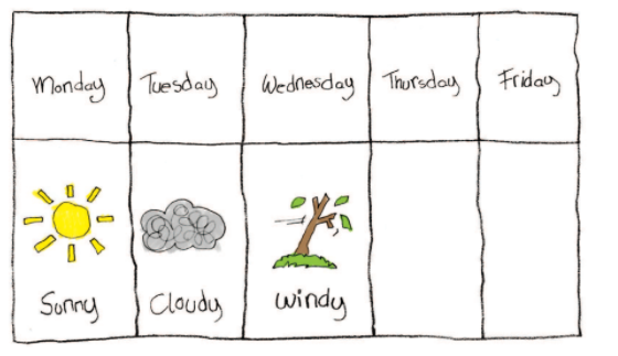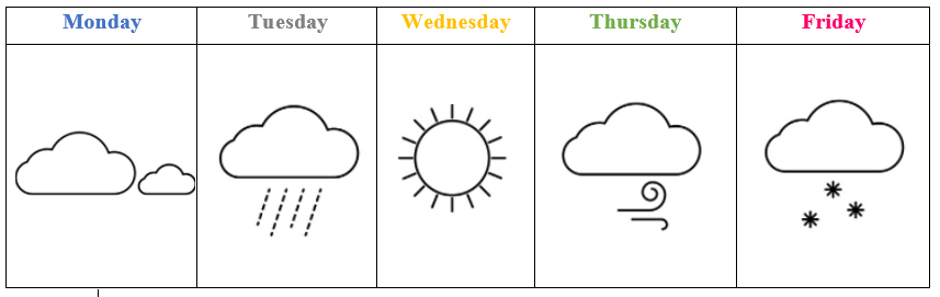 Task 14. Make a weather chart. Write the days of the week. (Lập biểu đồ thời tiết. Viết các ngày trong tuần.)