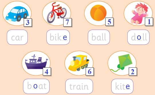 (Nghe và đánh số. Sau đó tô và điền chữ e hoặc o.)