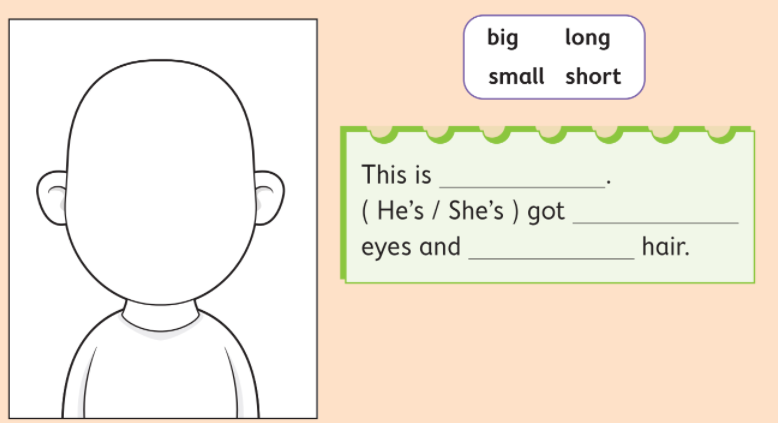 (Vẽ một người bạn. Sau đó viết hoặc nói.)