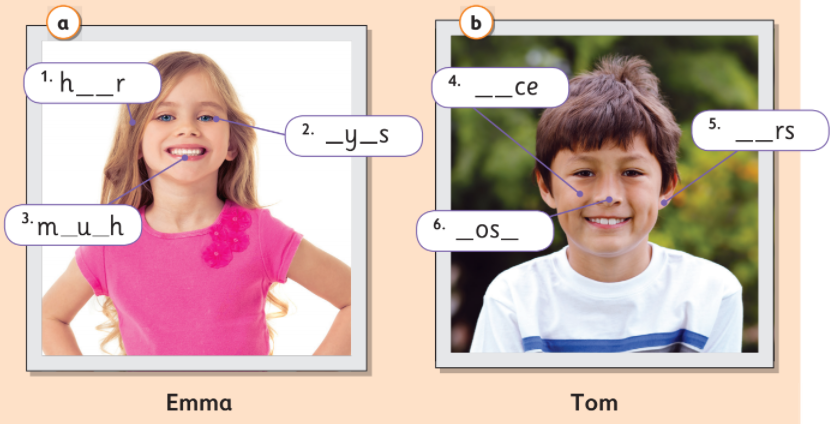 (Nhìn và viết. Sau đó, lắng nghe và nói Emma hoặc Tom.)