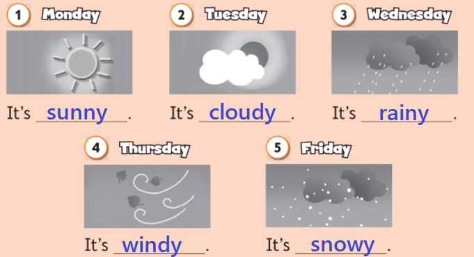 cloudy rainy snowy sunny windy |