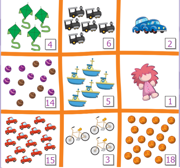 (Có bao nhiêu quả bóng (màu cam)? - Mười tám quả bóng.)