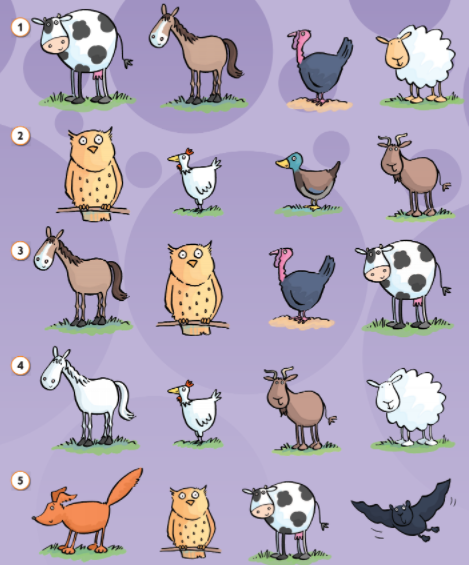 Task 17. Circle the odd one out. Then say. (Khoanh tròn con vật khác loại. Sau đó nói)