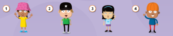 3. I'm wearing a purple skirt, a blue T-shirt, pink socks and black shoes.