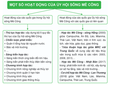 Vẽ sơ đồ thể hiện một số hoạt động của ủy hội sông Mê Công.