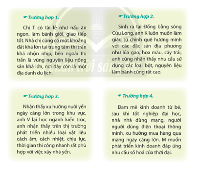 Em hãy xác định lĩnh vực kinh doanh thích hợp trong các trường hợp dưới đây.
