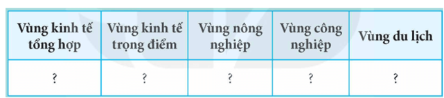 Lập bảng kể tên các loại vùng kinh tế của nước ta hiện nay theo mẫu sau vào vở ghi bài: