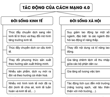 Lập sơ đồ thể hiện tác động của cách mạng công nghiệp 4.0 tới kinh tế - xã hội thế giới.