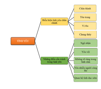 Em hãy vẽ sơ đồ tư duy tóm tắt về biểu hiện của tình yêu chân chính và những điều cần tránh trong tình yêu tuổi học trò.