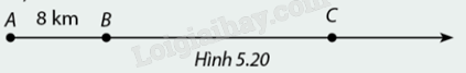 Quãng đường \(AB\) dài 8 km. Một xe máy đi từ \(B\) về \(C\) với tốc độ không đổi 40 km/h (Hình 5.20).