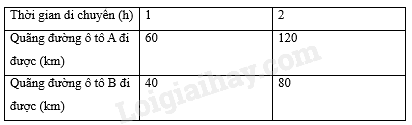 Xác định hệ số góc của mỗi đường thẳng bằng cách thay các giá trị \(x,y\) vừa tìm được vào công thức \(y = ax + b\). Sau đó tính tốc độ của mỗi xe dựa vào công thức \(s = v.t\).