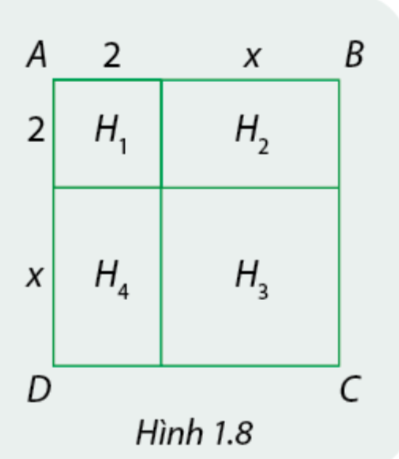 Diện tích hình vuông ABCD là : \({S_{ABCD}} = \left( {2 + x} \right).\left( {2 + x} \right) = {\left( {2 + x} \right)^2}\)