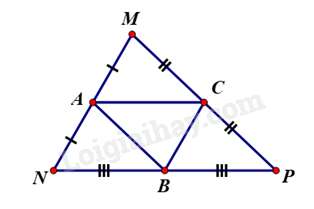 Vẽ tam giác \(MNP\) lấy \(A,B,C\) lần lượt là trung điểm của \(MN,NP,MP.\)