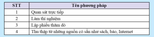 b) Theo em, bạn Tú đã dùng phương pháp nào trong các phương pháp sau để thu thập dữ liệu?
