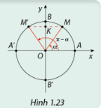 a) Dựa vào Hình 1.23, hãy so sánh \(\sin \left( {\pi - \alpha } \right)\) và \(\sin \left( \alpha \right)\); \(\cos \left( {\pi - \alpha } \right)\) và \(\cos \left( \alpha \right)\).