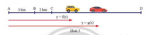 a) Viết công thức của hai hàm số biểu thị khoảng cách từ \(A\) đến mỗi xe sau \(x\) giờ.