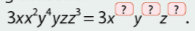\(3x{y^4}z{x^2}y{z^3} = 3{x^3}{y^5}{z^4}\)