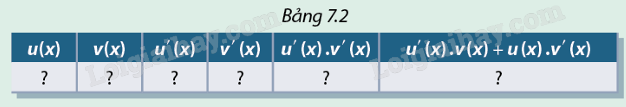 b, Tính \({u'}(x)\) và \({v'}(x)\) theo công thức \({({x^n})'} = n.{x^{n - 1}}\) và hoàn thành bảng