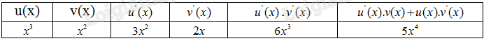 \( \Rightarrow {{\rm{[}}u(x).v(x){\rm{]}}'} = {({x^5})'} = 5{x^4}\)