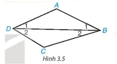 Cho tứ giác ABCD. Kẻ đường chéo BD (H.3.5). Vận dụng định lí về tổng ba góc trong một tam giác đối với tam giác ABD và CBD, tính tổng các góc của tứ giác ABCD.