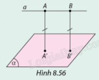 Cho đường thẳng a và mặt phẳng \(\left( \alpha \right)\) song song với nhau. Trên a lấy hai điểm tuỳ ý A, B. Gọi A’, B’ lần lượt là các hình chiếu của A, B trên mặt phẳng \(\left( \alpha \right)\) (Hình 8,56).