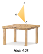 Bạn Nam cầm một miếng bìa hình tam giác với 3 đỉnh là A, B, C (Hình 4.23) đưa lên không quá cao so với mặt bàn và khẳng định rằng: “Nếu ta đặt các thanh thước dài dọc theo các cạnh AB, BC, CA để các thanh thước này chạm vào mặt bàn lần lượt tại các vị trí đánh dấu là điểm D, E, F thì ba điểm này thẳng hàng”. Bạn Mai không đồng ý và khẳng định: “D, E, F không thẳng hàng dược vì A, B, C không thẳng hàng”. Hãy cho biết ai đúng, ai sai? Vì sao?