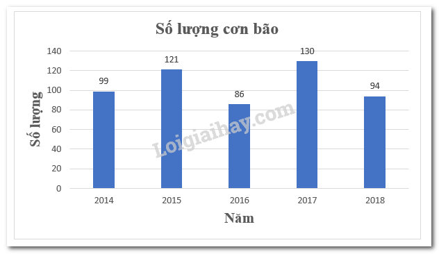 b) Vẽ biểu đồ cột biểu diễn dữ liệu này. Nếu ta có dữ liệu về số cơn bão hằng năm trên toàn cầu từ năm 1970 đến nay thì có nên dùng biểu đồ cột để biểu diễn không?