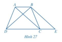 Quan sát hình thang ABCD (AB //CD, AB < CD) có hai đường chéo AC và BD bằng nhau kẻ BE song song với AC (E thuộc đường thẳng CD) như hình 27