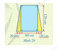 Một ô cửa sổ có dạng hình chữ nhật với chiều dài là 120 m và chiều rộng là 80 cm. Người ta mở rộng ô cửa sổ đó bằng cách tăng độ dài cạnh dưới về hai bên, mỗi bên 20 cm (mô tả ở Hình 29). Sau khi mở rộng thì ô của sổ đó có dạng hình gì? Tính diện tích của ô của sổ đó sau khi mở rộng.