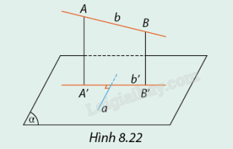 Cho đường thẳng \(b\) không nằm trong mặt phẳng \(\left( \alpha \right)\) và không vuông góc với \(\left( \alpha \right)\). Gọi \(A,B\) là hai điểm phân biệt trên \(b\) và \(A',B'\) lần lượt là hình chiếu của \(A,B\) trên \(\left( \alpha \right)\). Gọi \(b'\) là đường thẳng đi qua \(A',B'\) thì \(b'\) là hình chiếu vuông góc của \(b\) trên mặt phẳng \(\left( \alpha \right)\). Xét \(a\) là một đường thẳng nằm tròn \(\left( \alpha \right)\).