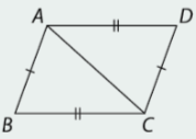 Vậy \(\Delta ABC = \Delta CDA\left( {c - c - c} \right) \Rightarrow \widehat {ACD} = \widehat {BAC};\widehat {DAC} = \widehat {ACB}\)