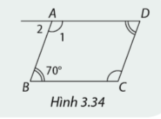 Trong hình 3.34, tứ giác \(ABCD\) có \(\widehat {{A_1}} = \widehat C\) và \(\widehat B = \widehat D = 70^\circ .\)
