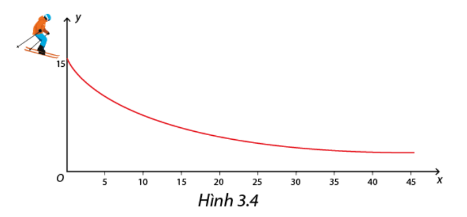 Vận động viên sẽ xuất phát từ vị trí (0; 15) cao 15 m so với mặt đất (trục 0x) . Đường trượt phải thỏa mãn yêu cầu là càng ra xa thì càng gần mặt đất để tiết kiệm lượng tuyết nhân tạo. Một nhà thiết kế đề nghị sử dụng đường cong là đồ thị \(y = f(x) = \frac{{150}}{{x + 10}}\) với \(x \ge 0\). Hãy kiểm tra xem hàm số y=f(x) có thỏa mãn các điều kiện dưới đây hay không: