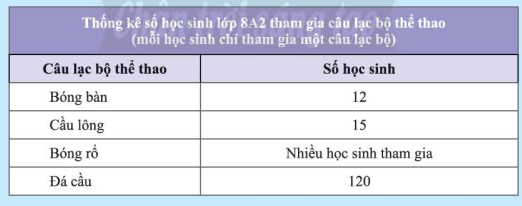 Bảng thống kê sau cho biết dữ liệu về hoạt động trong giờ ra chơi của học sinh sinh lớp 8A1 (mỗi học sinh chỉ thực hiện một hoạt đồng)