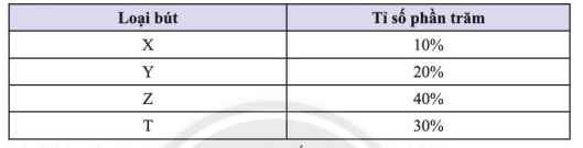 Thị phần của một sản phẩm là phần thị trường tiêu thụ mà sản phẩm đó chiếm lĩnh so với tổng số sản phẩm tiêu thụ của thị trường. Bảng thống kê sau cho biết tỉ số phần trăm thị phần của 4 loại bút trên thị trường.