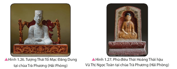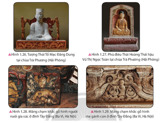 Quan sát các hình 1.26, 1.27, 1.28 và 1.29, đọc thông tin, nêu đặc điểm nghệ thuật điêu khắc thời Mạc.