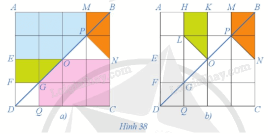 Quan sát Hình 38a và chứng minh hai hình AMPOE và CQGON bằng nhau.